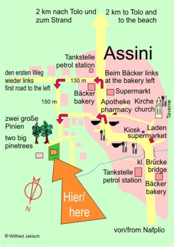 halten Richtung Tolo. Im Ort Assini siehe Zeichnung links!
