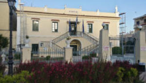 reihenweise pleite gehen... Linkes Bild: das Rathaus von Argos