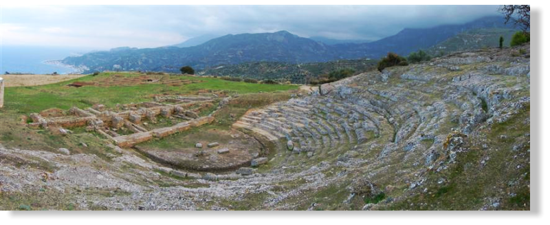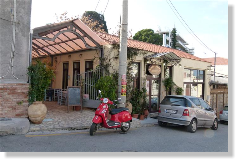 Urige Taverne „O Vrachos“ - der Fels in Eghes oberhalb des antiken Theaters von Eghira. Die