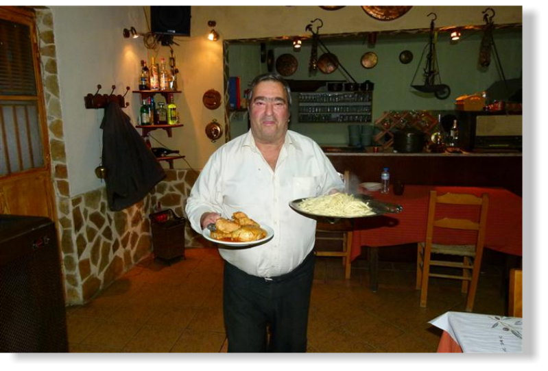 Frikassé mit Löwenzahn“ - geradezu sensationell! Triandafyllos, der Wirt, der zwischenzeitlich den