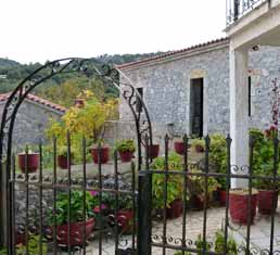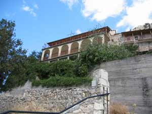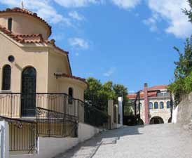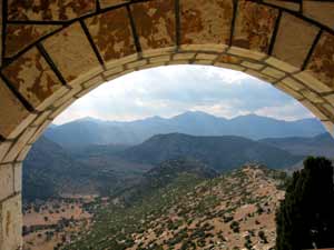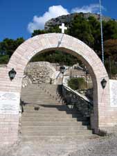 | An diesem "Hutfelsen" befindet sich oberhalb von Nestani ein Kloster mit dem unaussprechlichen Namen "Panajia Gorgoepikoou". Auf der Abfahrt zum Dorf gibt es einen Abzweig nach links zum Kloster. Schon wegen der Aussicht lohnt sich ein Abstecher. | |||||||||