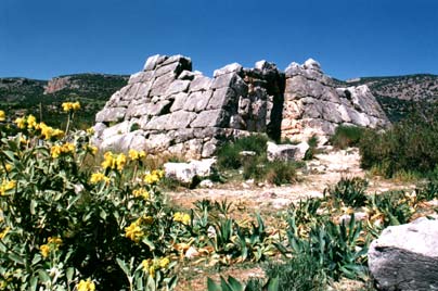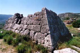 Nein, keine Bilder aus Ägypten! Diese Pyramide befindet sich etwa zwei Kilometer oberhalb von Kefalari beim Ort Hellenikon. Sie ist eindeutig mykenischer Bauart. Nicht ganz geklärt ist allerdings, welchem Zweck sie einstmals diente. War es eine Art Wachturm? Es erscheint logisch, weil man vom Palast in Mykene den Argolischen Golf nicht gut einsehen konnte und demzufolge auch nicht sehen konnte, wenn sich feindliche Flotten näherten. Von der Pyramide aus kann man bei guter Sicht bis zur Insel Spetses sehen. | |