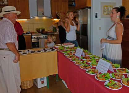 Linkes Bild: Veranstalterin Burgi Bläuel, Mimis Plessas und die