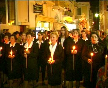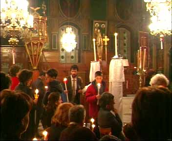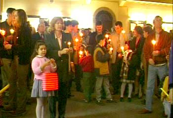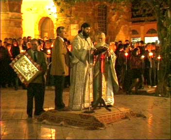 Inbrunst singt dazu der Chor. Fast alle Menschen tragen brennende Kerzen.