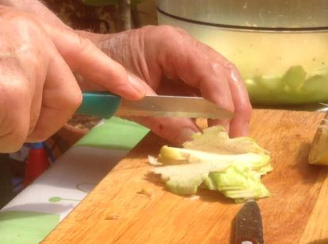 Salat von frischen Artischocken mit Avocado Beim Kauf der Artischocken unbedingt auf Frische achten. (Daher ist das Rezept wohl nicht so sehr für mitteleuropäische Breiten geeignet.) Die Knospe muss fest und geschlossen sein, darf keine braunen Blätter haben. Die Stiele möglichst dick auswählen, dürfen nicht sehr biegsam sein. Das Mark der Stiele wird nämlich später ein wichtiger Bestandteil des Salats sein. Ganz wichtig für das Putzen der Artischocken sind Zitronen. alle Schnittstellen an Stielen und Knospen müssen immer sofort mit Zitronensaft eingerieben werden, damit sie nicht braun werden.