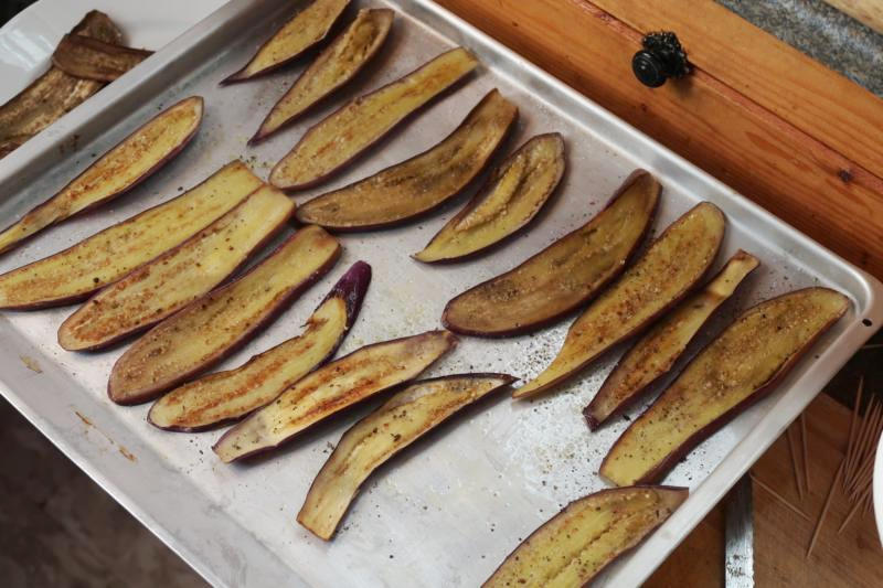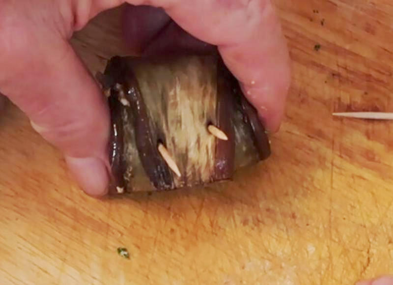 fixieren. In der Mitte macht keinen Sinn, weil dort die Auberginen zu weich sind. Und jetzt