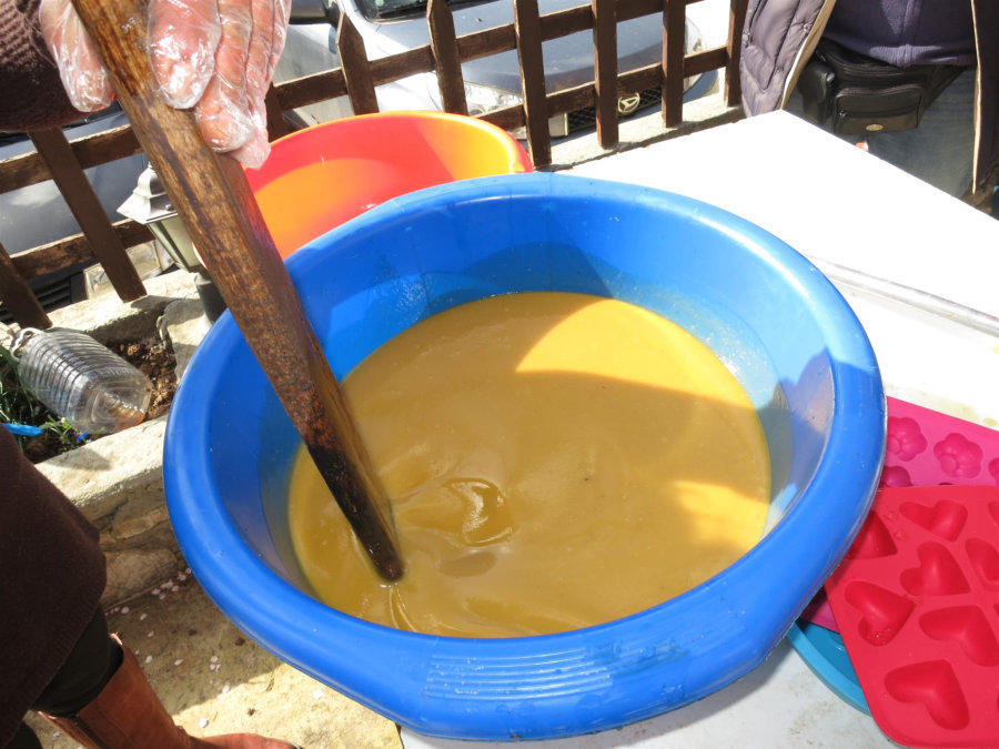 Seife richtig fest ist. Man kann auch kleine Backförmchen oder Konfektformen mit der Masse füllen. Da hat man immer ‘mal ein schönes