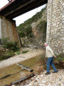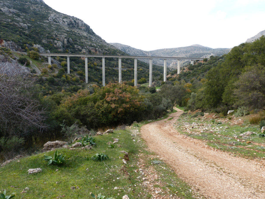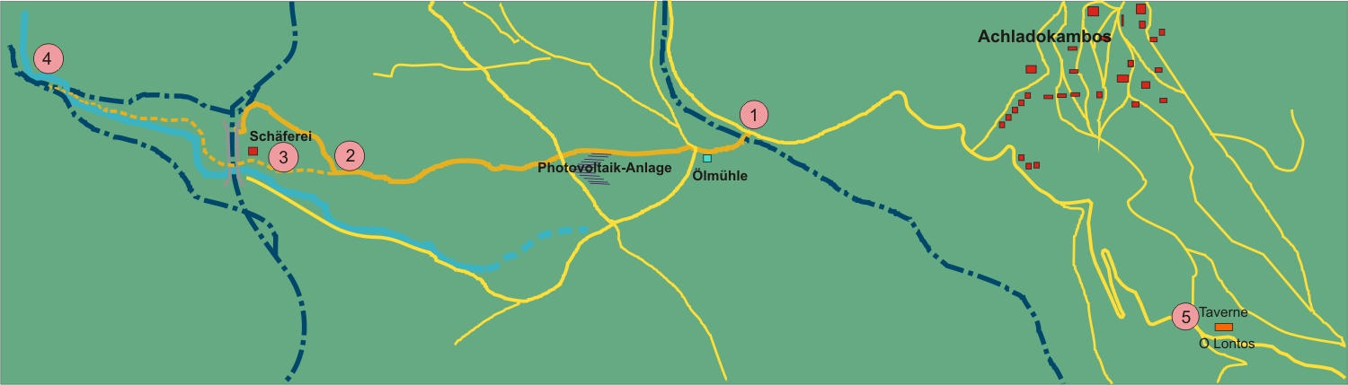 Weg unten geht unter der Brücke durch. Wir passieren die Schäferei von Takis und Vangelio (Punkt 3). Die