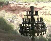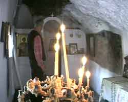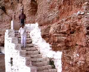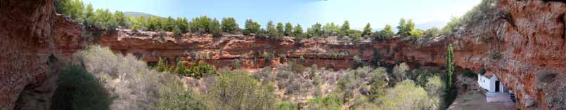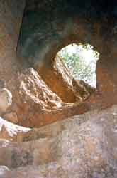 | Zwei kleine Kirchen ducken sich unter die bedrohlich wirkenden Felkswände, die aus einem Konglomerat-Gestein bestehen. Es sieht recht brüchig aus, hat aber einer unglaubliche Festigkeit, sozusagen eine Art Naturbeton. | |||||||||||||