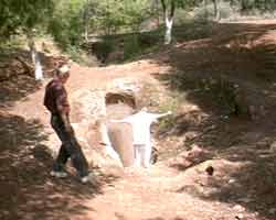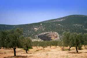 der Eingang ist in einem kleinen Pinienwäldchen versteckt. Man