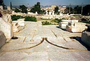 tief in den Marmor geschnittenen Spuren des Tempeltores lassen Größe