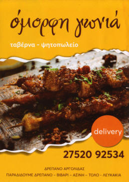 An der Straße von Drepano nach Tolo kurz vor demAbzweig zum Plaka-Strand auf der rechten Seite neben der Pizzeria. Täglich geöffnet.Tel.: 27520 92534, Romeo Handy 699 467 9263