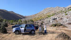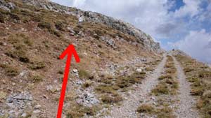 Unbedingt Wasser für den Aufstieg mitnehmen, weil es in der trockenen Jahreszeit weit und breit keine Quelle gibt! Bei etwa 2050 Höhenmetern quert man eine Bergstraße, der man anschließend nur etwa 400 m folgt. Dann den Abzweig nach links hinauf nicht verpassen! Von dort sind es noch etwa 30 Minuten bis zum Gipfel. |