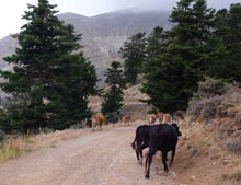 einige Tage eingemietet hatten, gastfreundlich mit Kaffee bewirtet. Für die Rückfahrt kann man die sehr gute Bergstraße nach Goura nehmen (Schotter, aber auch für normale Pkws gut befahrbar). In Goura selbst gibt es einige nette Tavernen, auch Herbergen. |
