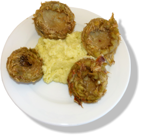 zubereitet. Dazu werden die geschnittenen Artischocken-Böden in