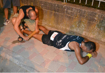 Er sah, wie unterwegs immer mehr Läufer aufgaben. Bis zum Korinth-Kanal waren es