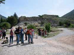 verschlossen.Man muss dann einen ziemlich großen Bogen machen, um im Dorf Mykene wieder herauszukommen. Rückfahrt nach Nafplio mit dem Bus. (Vorher nach den Abfahrtzeiten erkundigen!) |