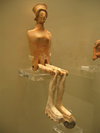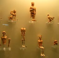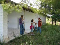 | Es gab Landwirtschaft, Schmieden, Olivenpressen und vermutlich auch eine große Kultstätte, an deren Stelle später die kleine Kirche des Hl. Ioannis erbaut wurde, die sich nmittelbar hinter dem Bad befindet. Auf dem Foto links unten sieht sie sehr niedrig aus, aber sie steckt etwa 2,50 tief in der Erde. | ||||