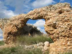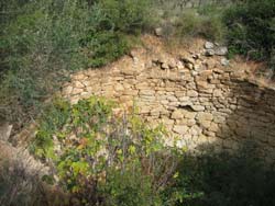 Von Assini oder von Nafplio direkt nach Mykene zu wandern ist natürlich ein bisschen weit. Es empfiehlt sich also, entweder eine Bus- oder Taxifahrt nach Prosymni. Die Route beginnt am Friedhof von Prosymni. Der Weg ist mit orangeroter Farbe markiert (da andere Wegweiser - siehe weiter unten - nicht mehr als solche taugen). Er führt durch die geschichtsträchtige Ebene von Berbati zunächst gemächlich bergauf, bergab, erst später gibt es einen mäßigen Anstieg. Am schönsten ist die Tour Ende April, Anfang Mai, wenn die wilden Gladiolen und der rote Mohn blühen. Aber auch zu anderen Jahreszeiten hat die Landschaft ihren Reiz. Am Weg liegen mehrere kleine Kirchen. Bei einer kann man im schattigen Garten Rast machen. Geht man nach dem Friedhof noch ein Stück geradeaus auf der Asphaltstraße kommt man zu den Ruinen eines römischen Bads aus dem 3. Jahrhundert. (Bild links) Das Bad wurde erst 1994 vom schwedischen archäologischen Institut erforscht, aber bis heute nicht komplett ausgegraben. Eine etwa 1400 Kubikmeter große Zisterne lässt darauf schließen, dass das Bad einst viel Kundschaft hatte, dass die Berbati-Ebene dicht besiedelt war. | ![]() |